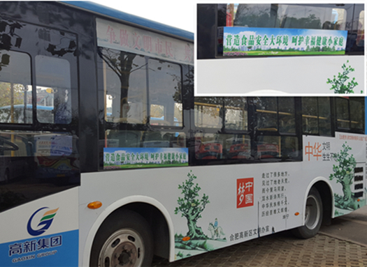 此次利用公交車(chē)身宣傳,亦是發(fā)揮了公共載體的宣傳功效,提升群眾知曉率,通過(guò)公交車(chē)這個(gè)平臺向乘客宣傳創(chuàng )建食品安全城市目的、意義及創(chuàng )建口號,展示高新區食品安全新形象,營(yíng)造全社會(huì )共同關(guān)注食品安全的良好氛圍。