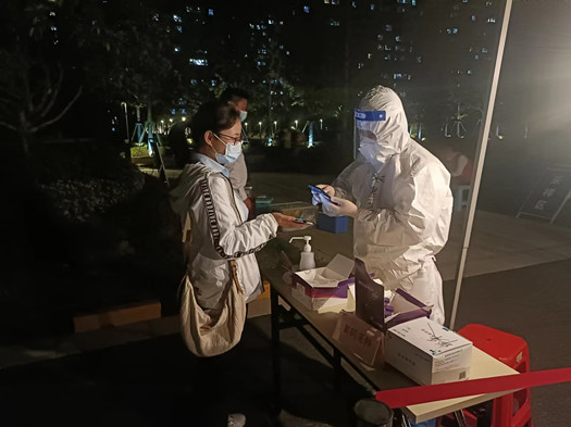 在各核酸檢測現場(chǎng),他們身著(zhù)防護服,耐心組織引導現場(chǎng)群眾有序排隊、掃碼登記,并提醒群眾保持距離、做好防護,確保整個(gè)核酸檢測工作快速、有序進(jìn)行;認真核對受檢群眾的身份信息,測量體溫、錄入信息、對其進(jìn)行樣本采集,確保做到應檢盡檢。