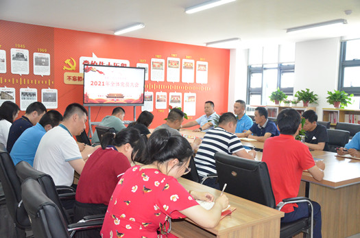 會(huì )后,在孔強同志的帶領(lǐng)下,全體黨員在莊嚴的黨旗下與新入黨的同志一起重溫了入黨誓詞。