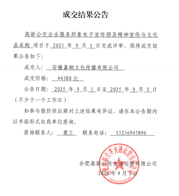 高新公交企業(yè)服務(wù)形象電子宣傳冊及精神宣傳與文化品采購成交結果公告